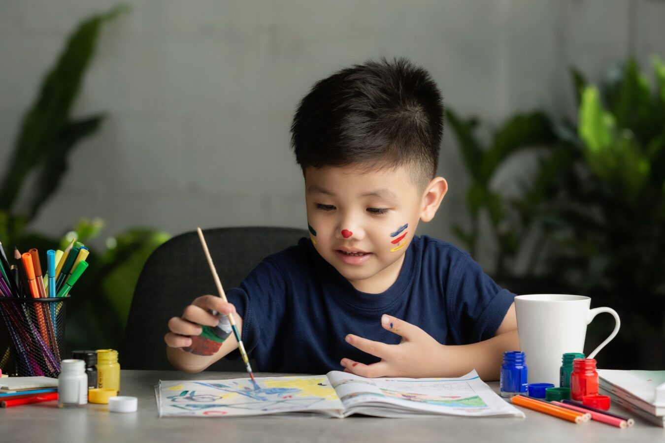 Other important resources for this station include brushes, sticks, cotton buds, leaves, stamps as well as gear for finger and/or palm painting.