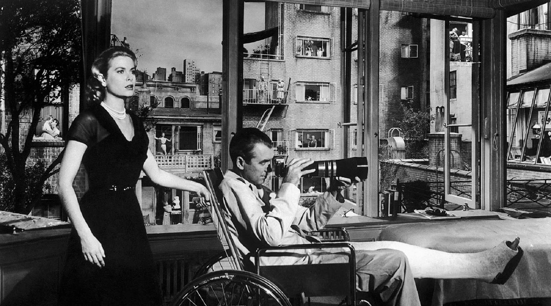 The most popular text in the 2020 English exam, Rear Window, is told from the perspective of Jeff – a man in a wheelchair. Everything is viewed through his apartment window. The film raises questions about the male gaze.